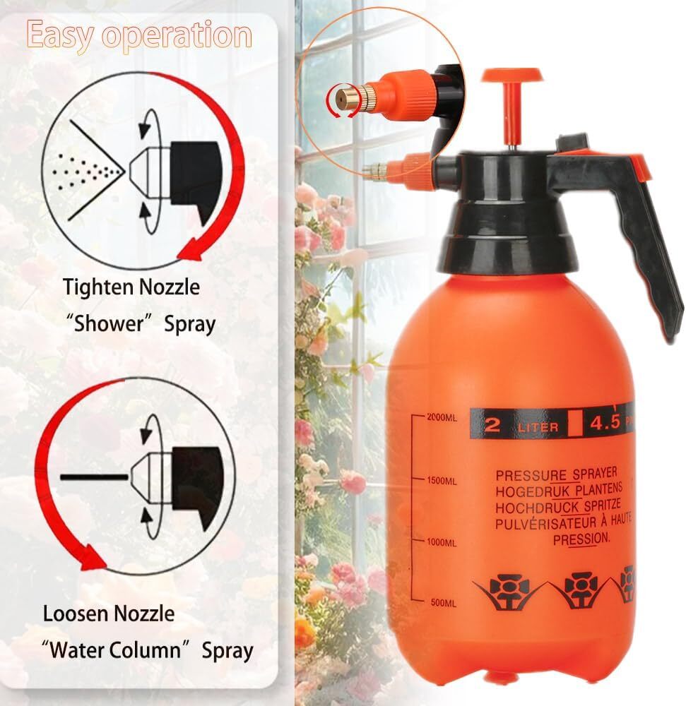 بخاخ الماء للنظافة والزراعه والنباتات و غسل السيارات 2 ليتر متعدد الاستخدامات ذات رأس متغير المسن اورانج