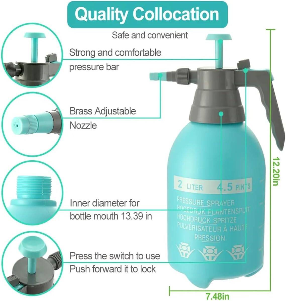 بخاخ الماء نوع أصلي للنظافة والزراعه والنباتات و غسل السيارات 2 ليتر ذات رأس متغير المسار . متعدد الأستخدام . بلاستيك مقوى مقاوم للصدمات . لون تيفني