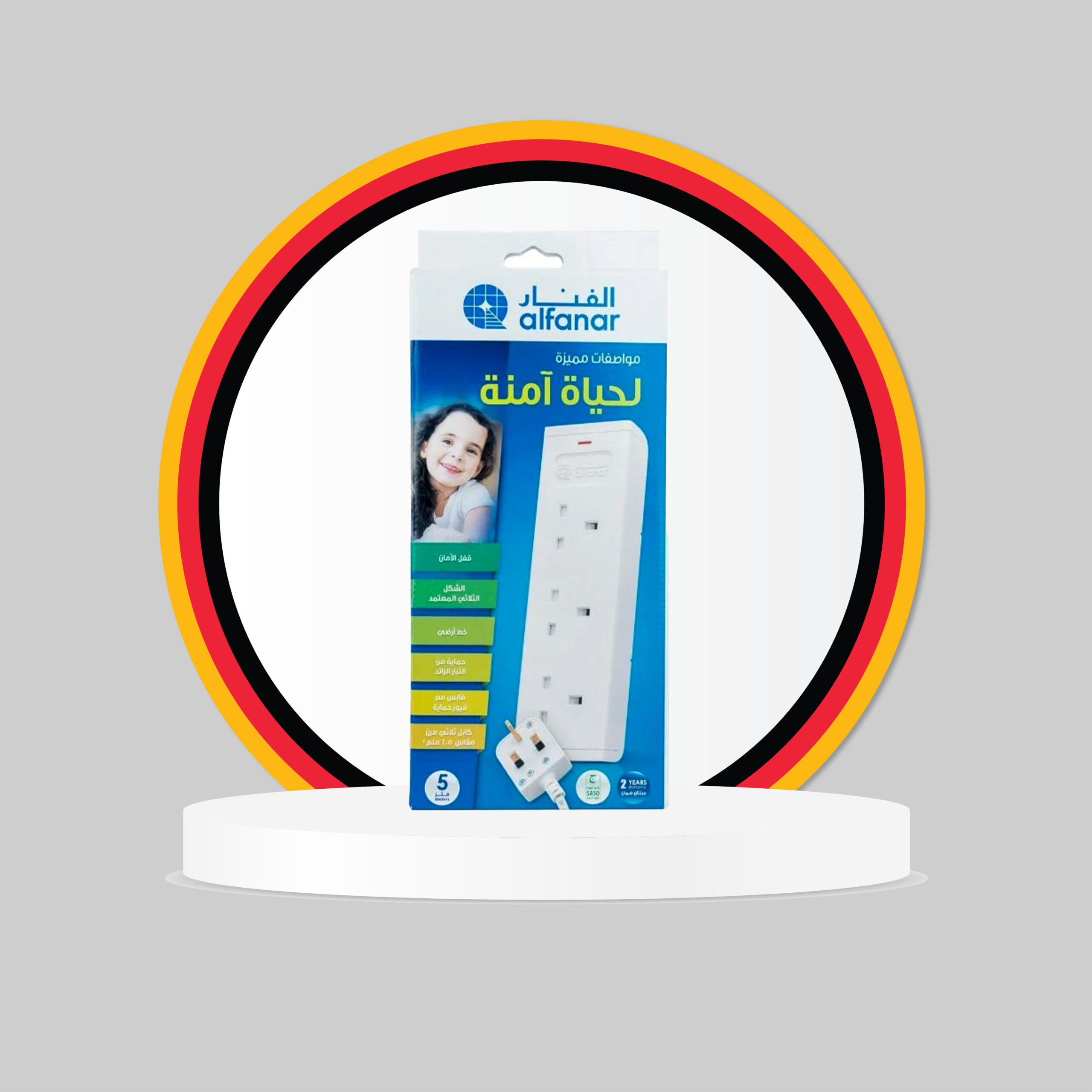توصيلة كهربائية ثلاثية المقبس 13 أمبير من الفنار بسلك 5 متر، حماية من الحمل الزائد لمزيد من السلامة مع الضمان السريع إلى باب منزلك . أمان معتمد للحماية من المخاطر الكهربائية
