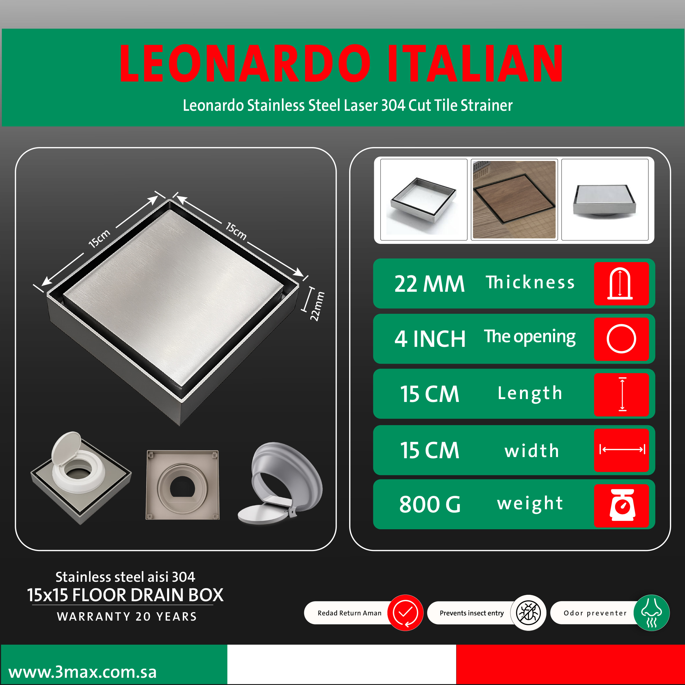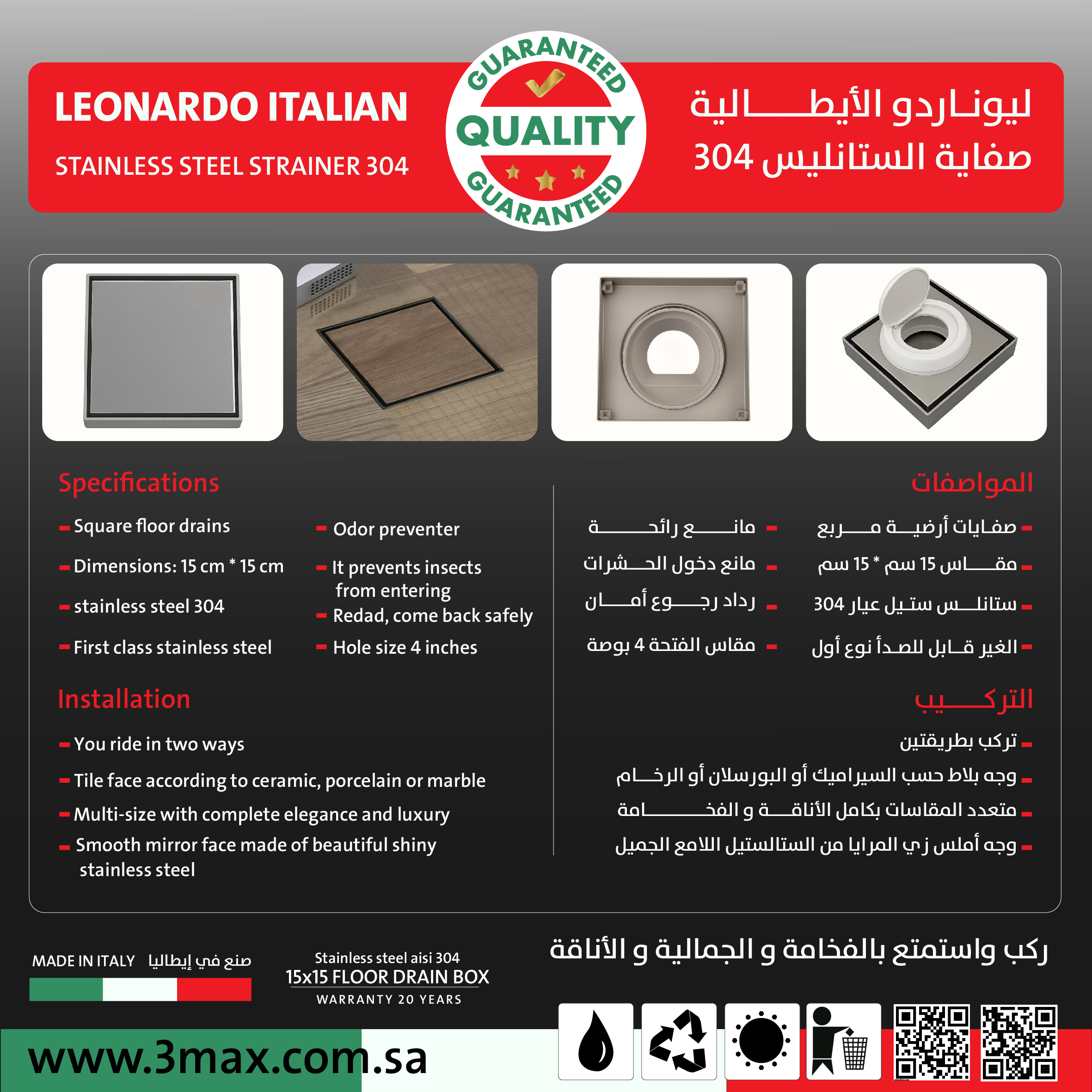 صفاية للبلاط والسيراميك اللون أسود المواد ستانلس ستيل 304 بلد المنشأ والصناعة ايطاليا