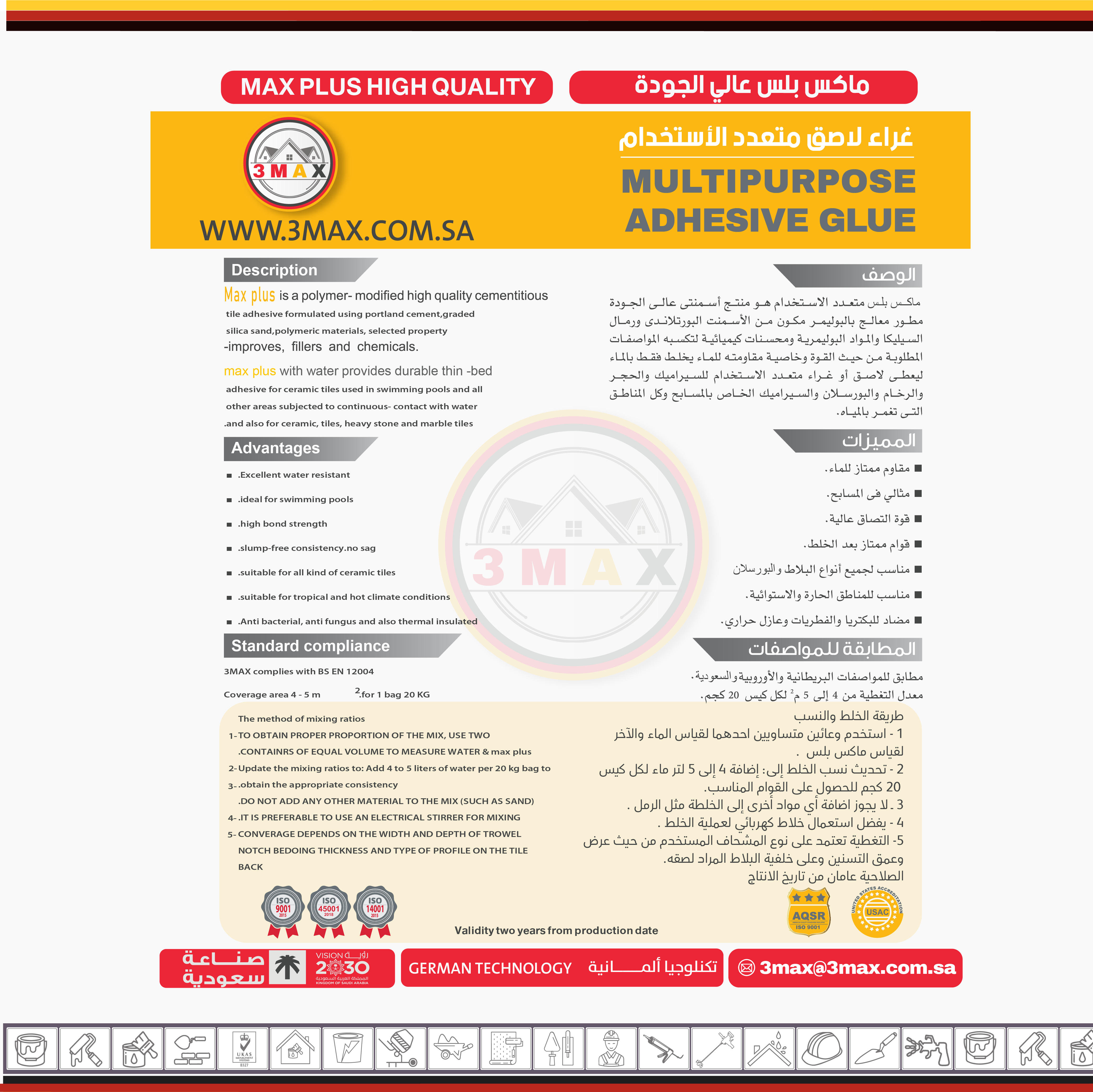 🧱 غراء بورسلان للمقاسات الكبيرة – MAX PLUS