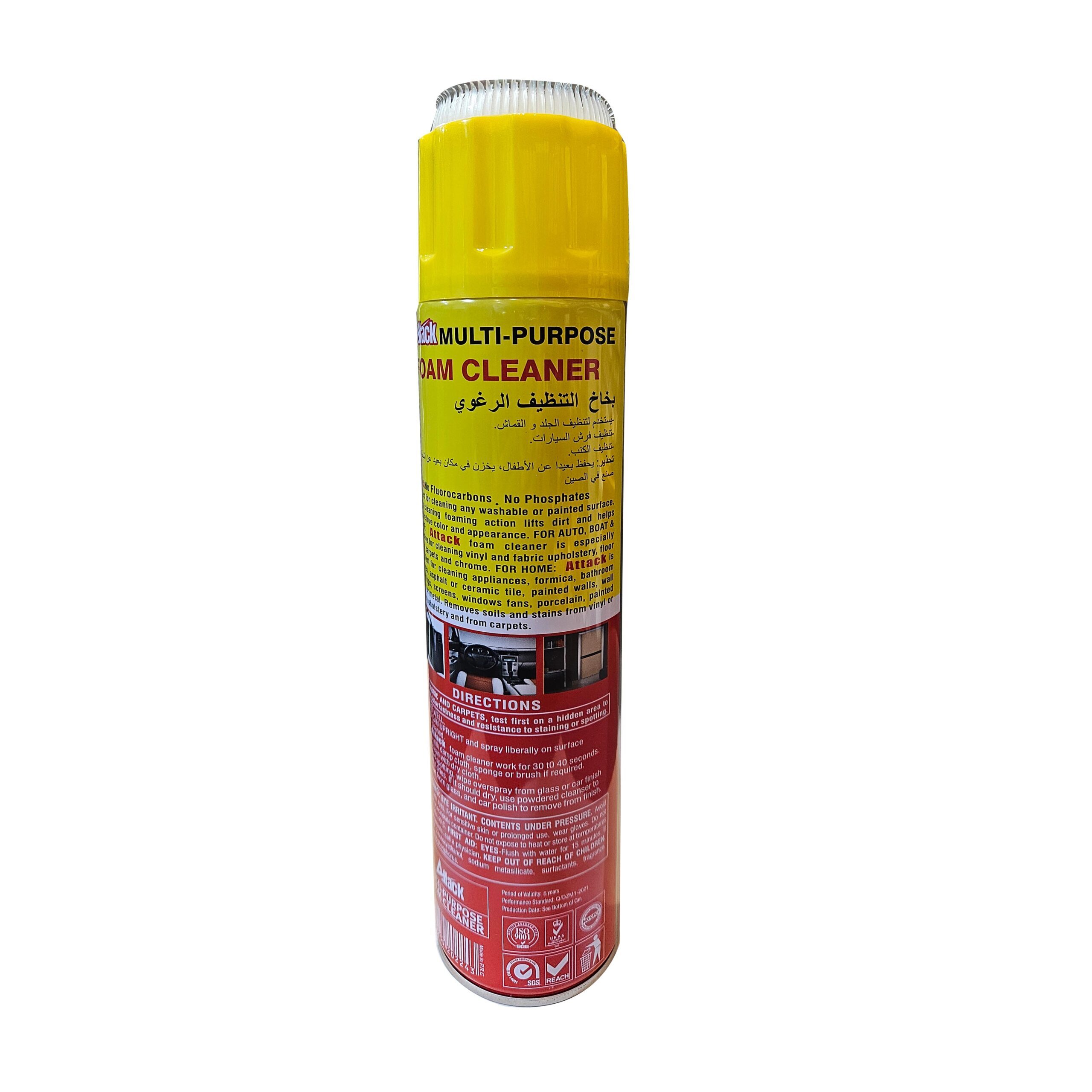 منظف رغوي متعدد الاستخدامات . يستخدم لتنظيف القماش و الجلد الطبيعي و الصناعي . لطيف على القماش والجلد قوي على الاوساخ . سريع الفاعلية بدون تأثير على الفرش . مناسب للسيارات و المنازل و المكاتب . مقاس 650 ميلي