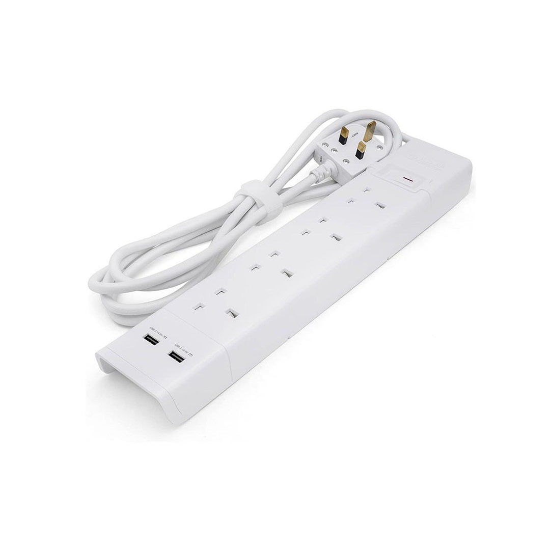 وصلة طاقة بـ 4 مقابس و منفذين USB للشحن السريع كيبلات 1.5 ملم طول 3 مت...