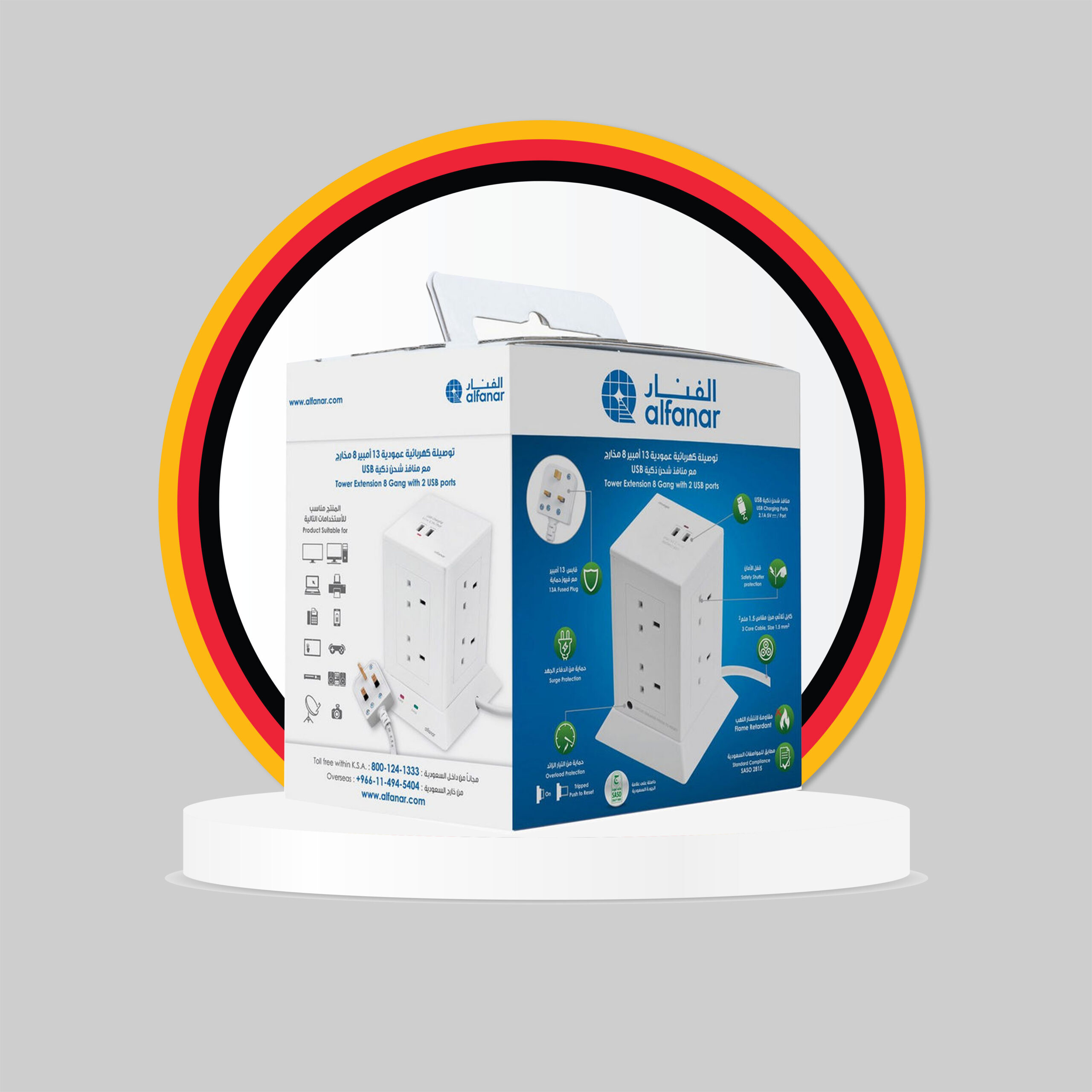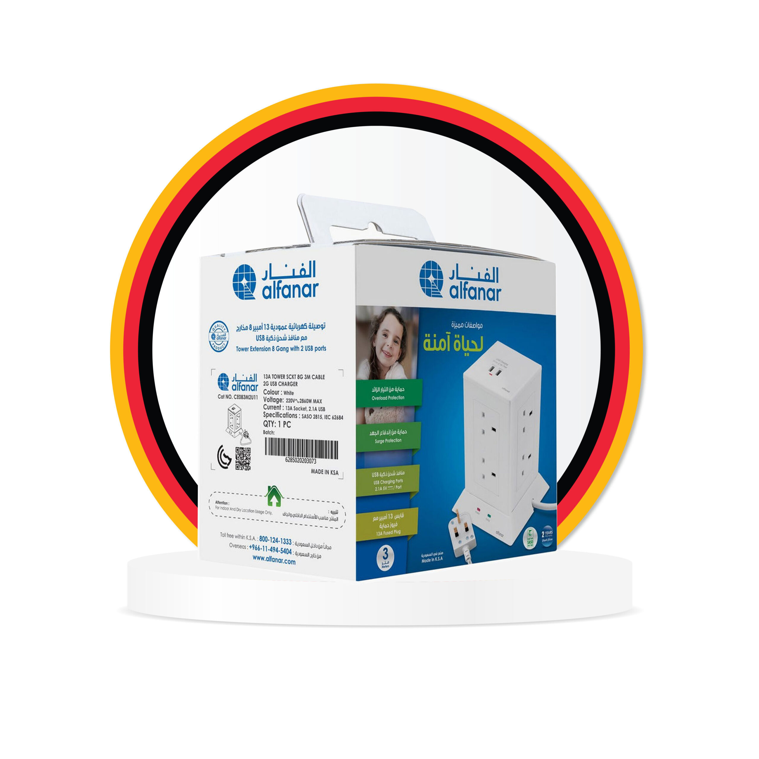 وصلة كهربائية مربعة طاقة بـ 8 مقابس و منفذين USB للشحن السريع كيبلات 1.5 ملم طول 3 متر ، قابس قوة 13 امبير مع زر حماية من الحمل الز ائد لسلامتكم ⚡ صناعة سعودية بجودة عالية – أمان معتمد للحماية من المخاطر الكهربائية . ضمان سريع إلى باب منزلك ا