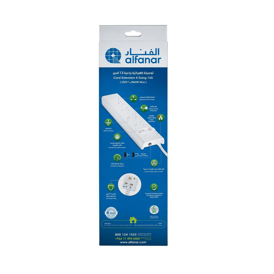 توصلة كهرباء الفنار 4 مقابس - طول 3 متر 13 أمبير مع حماية من الحمل ا�...