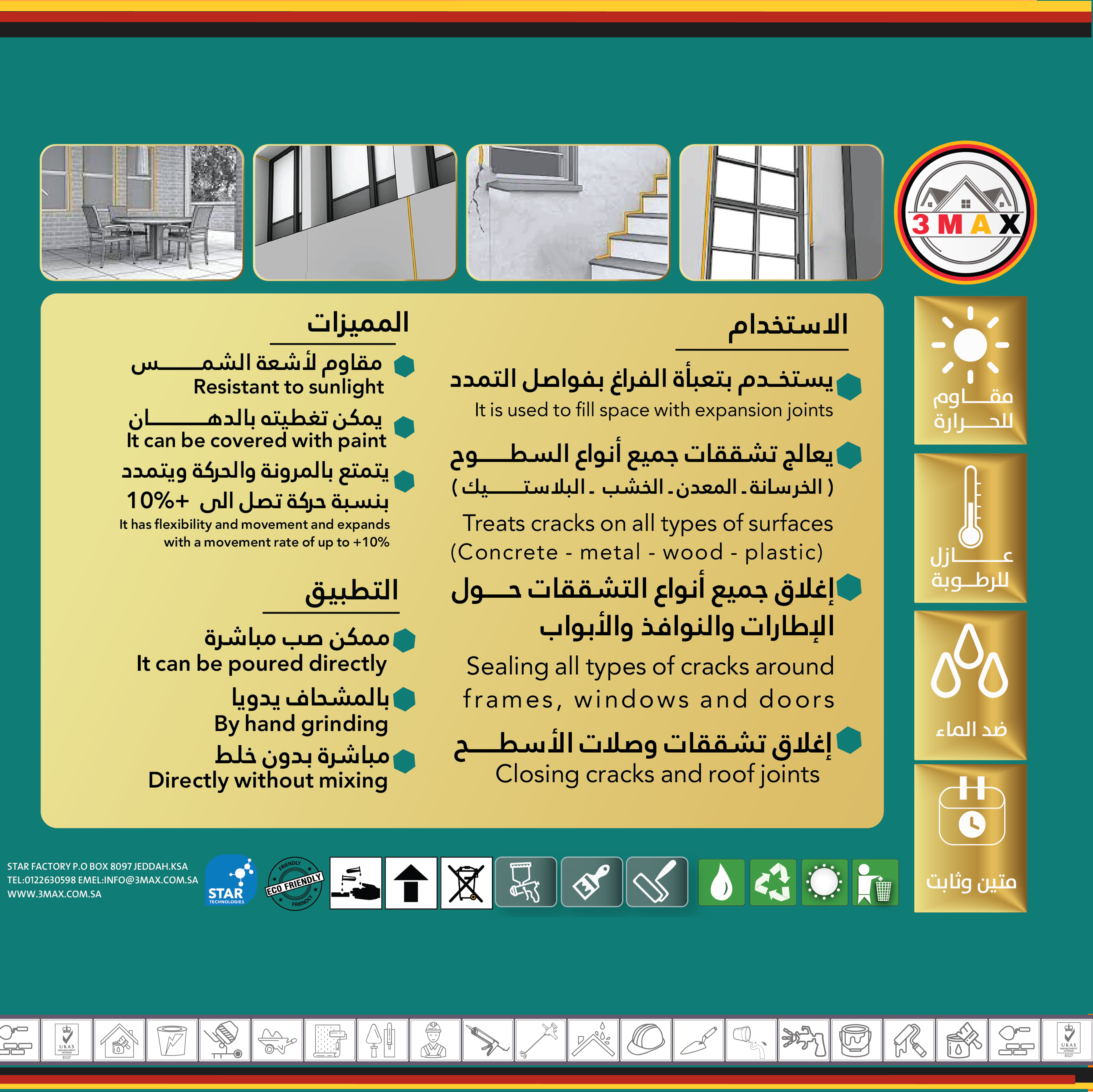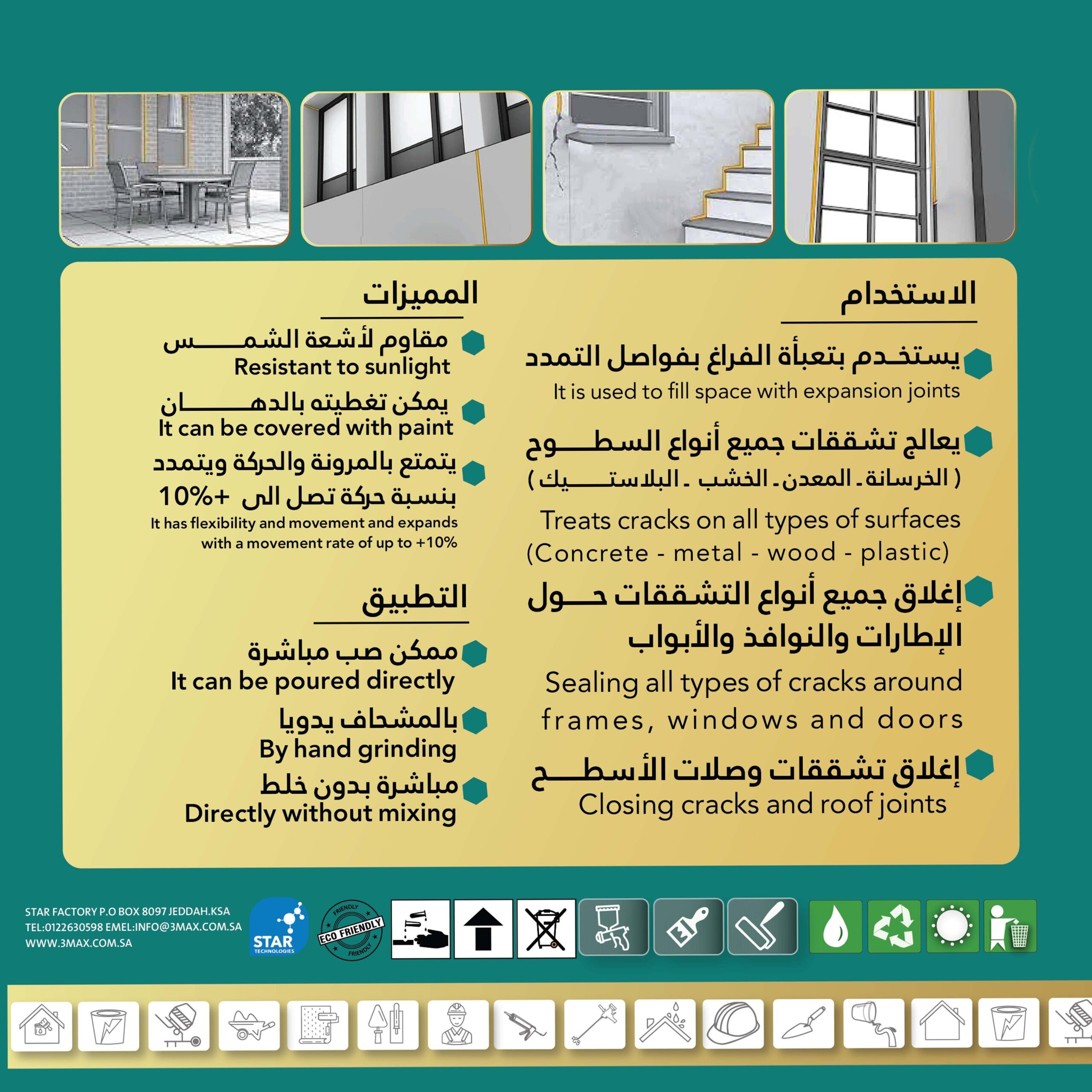 - سهل التركيب، يُستخدم مباشرة من العبوة بدون مزج أو إضافات